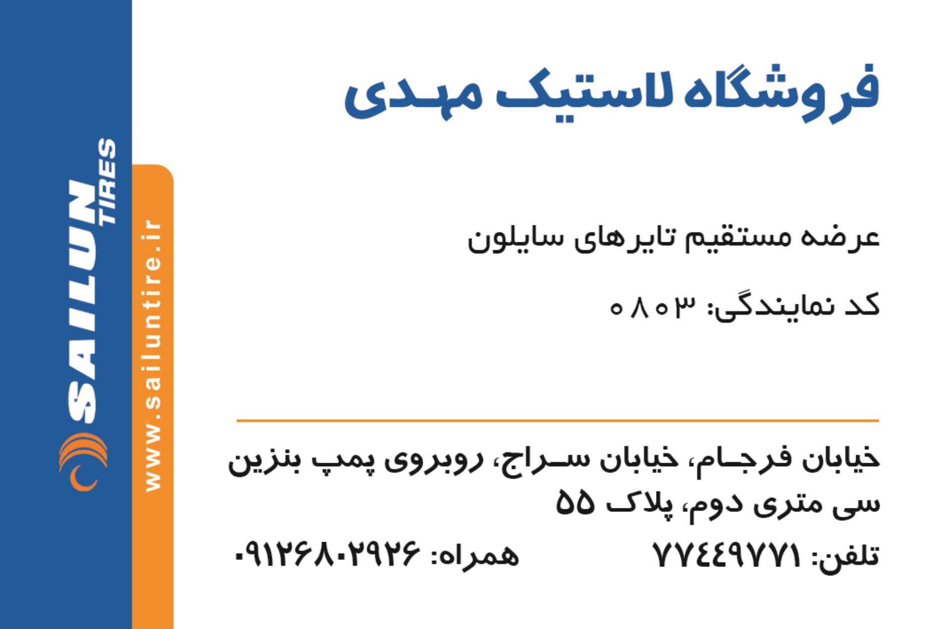آدرس : تهران - خ سراج ۳۰متری دوم پلاک ۵۵ - فروشگاه لاستیک مهدی