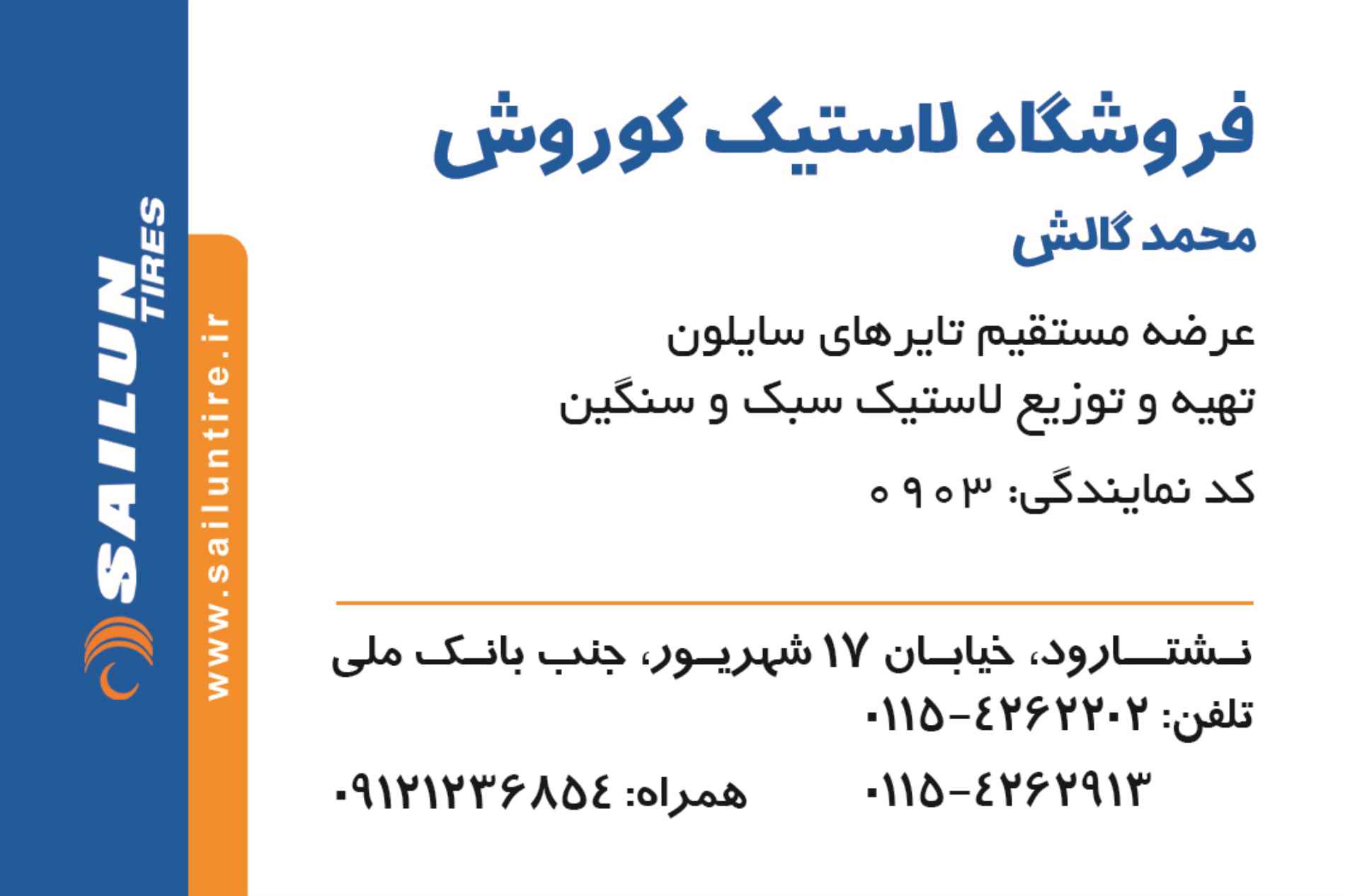 آدرس : تنکابن نشتارود خ ۱۷شهریور جنب اداره پست لاستیک کوروش