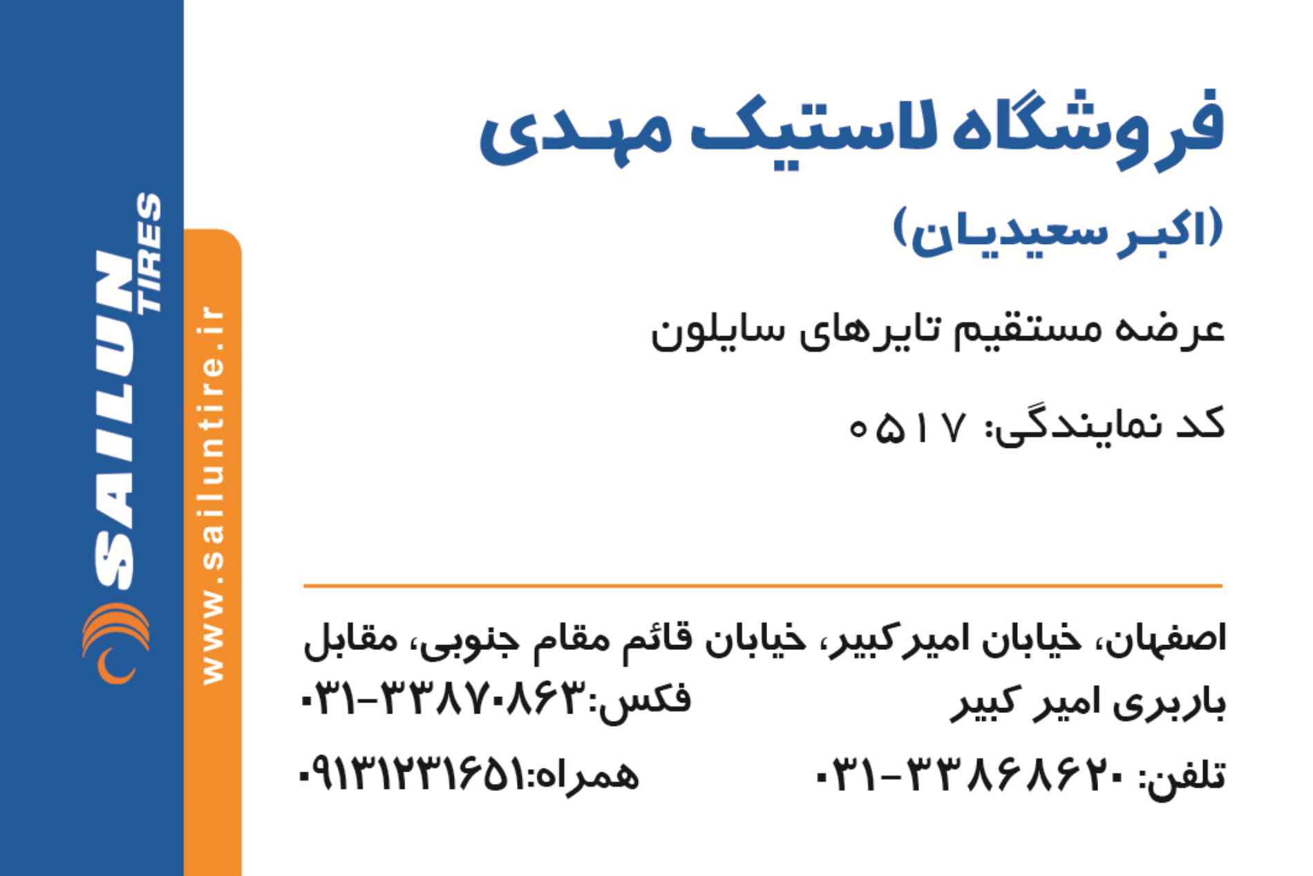 آدرس : اصفهان، خیابان امیرکبیر، خیابان قائم مقام جنوبی، مقابل باربری امیرکبیر، فروشگاه لاستیک مهدی