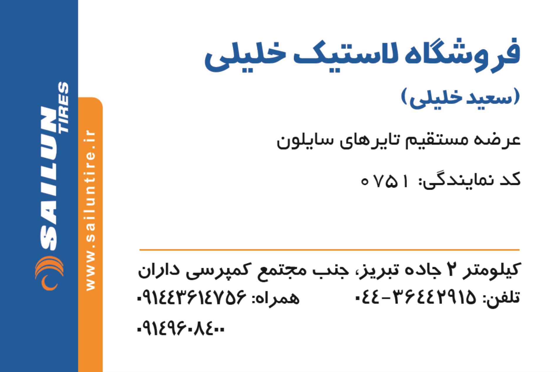 آدرس : خوی، بلوار مطهری، جنب کمپرس داران، بازرگانی لاستیک خلیلی
